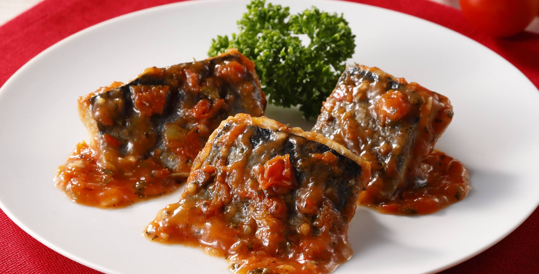 Retort cooking renders the bones perfectly edible, paired with a tomato sauce enriched by the savory essence of herring.